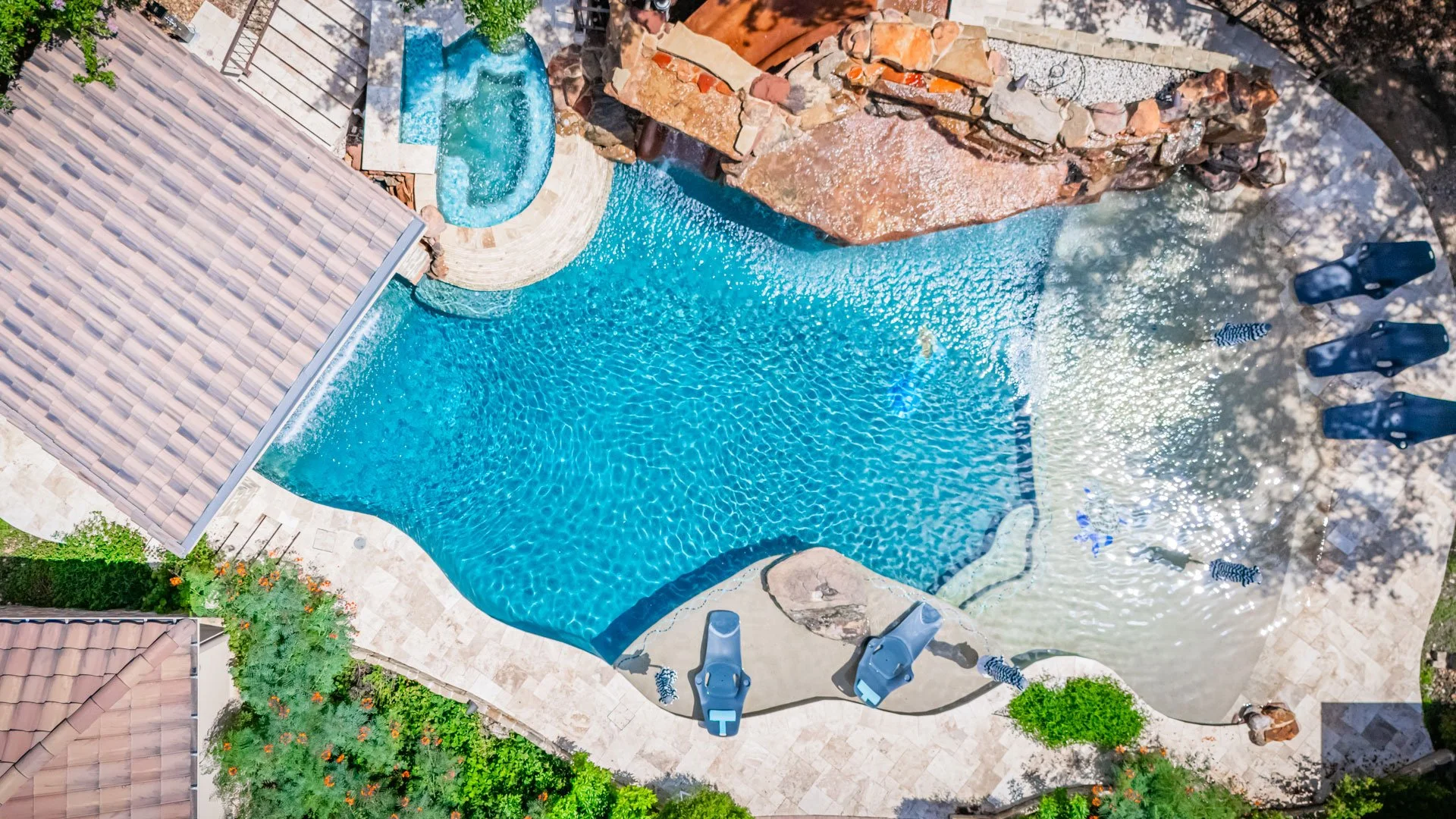 Choose from travertine, quartz, natural stone, pebble, and more — all installed with precision.